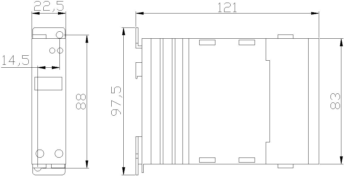 7)外形尺寸: 长×宽×高 121mm×97.5mm×22.5mm